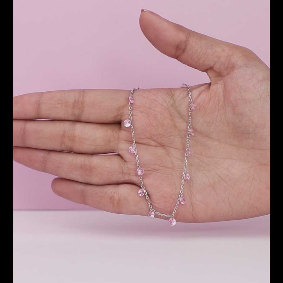 สร้อยคอคริสตัลแฟนตาซีสีชมพูสำหรับผู้หญิงสำหรับเด็กและเงิน