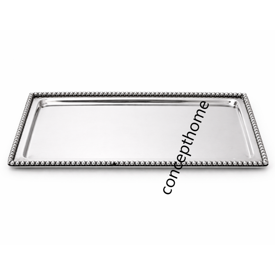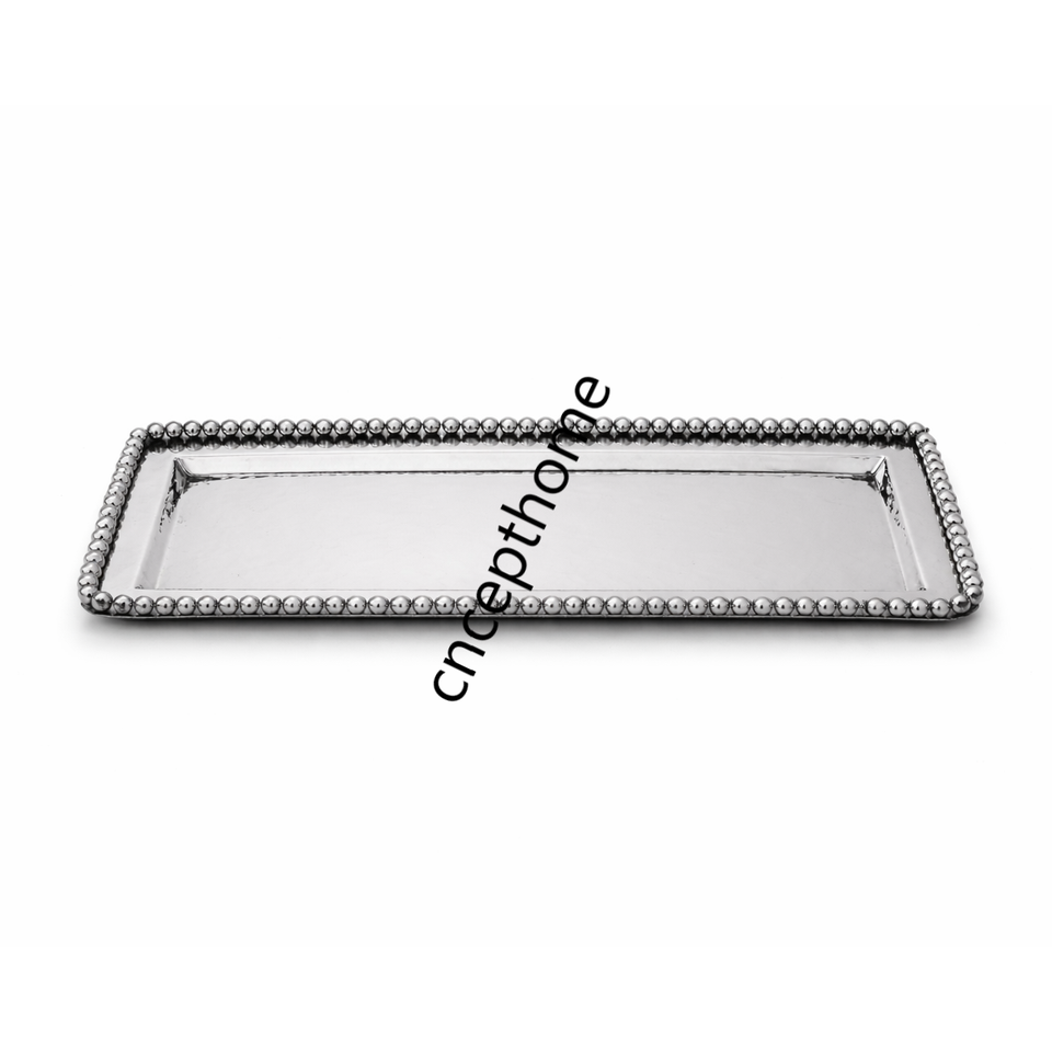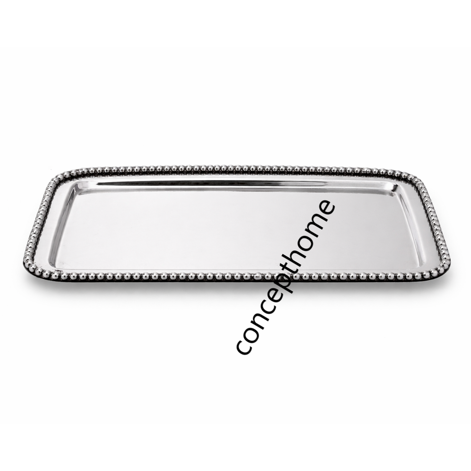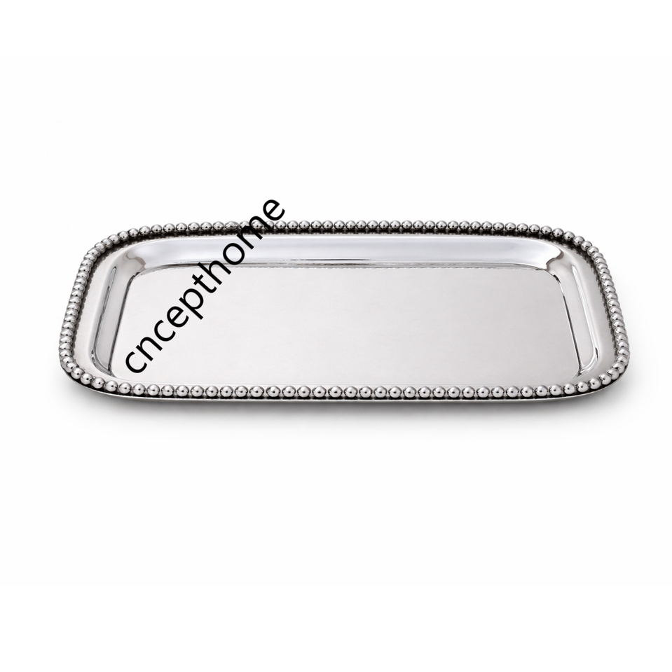 ถาดเสิร์ฟทรงกระจกตกแต่งสไตล์โมเดิร์น ประดับด้วยลูกปัดสีเงิน สวยงาม เป็นมิตรกับสิ่งแวดล้อม เหมาะสำหรับโต๊ะกาแฟ โต๊ะออตโตมัน ถาดโลหะคุณภาพพรีเมียมสำหรับเครื่องดื่ม
