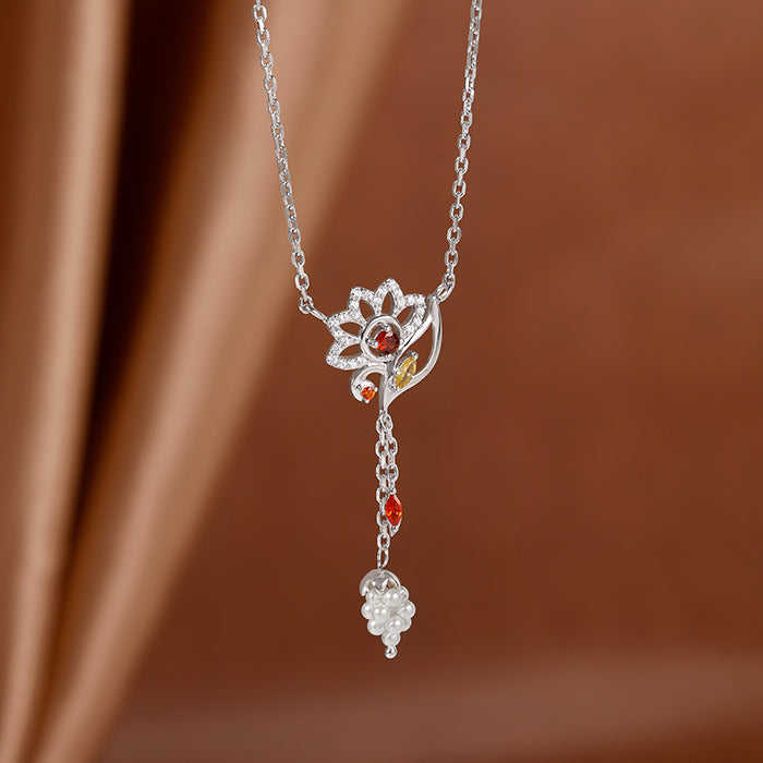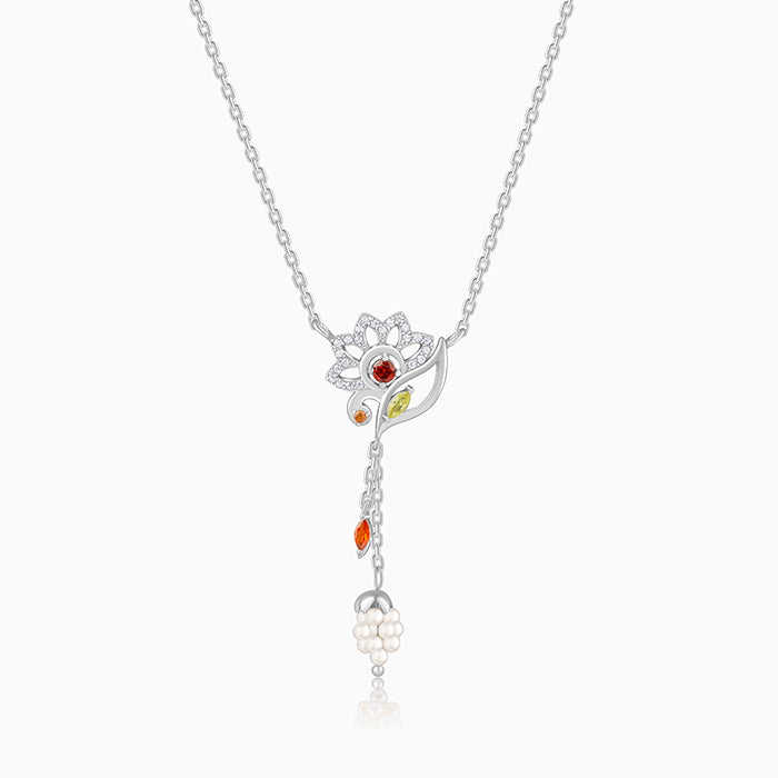 สร้อยเงินรูปดาวานีชุบโรเดียมสายโซ่ลายเรขาคณิตทันสมัยประกอบด้วยเพชรและไข่มุกสำหรับงานปาร์ตี้หรือของขวัญ