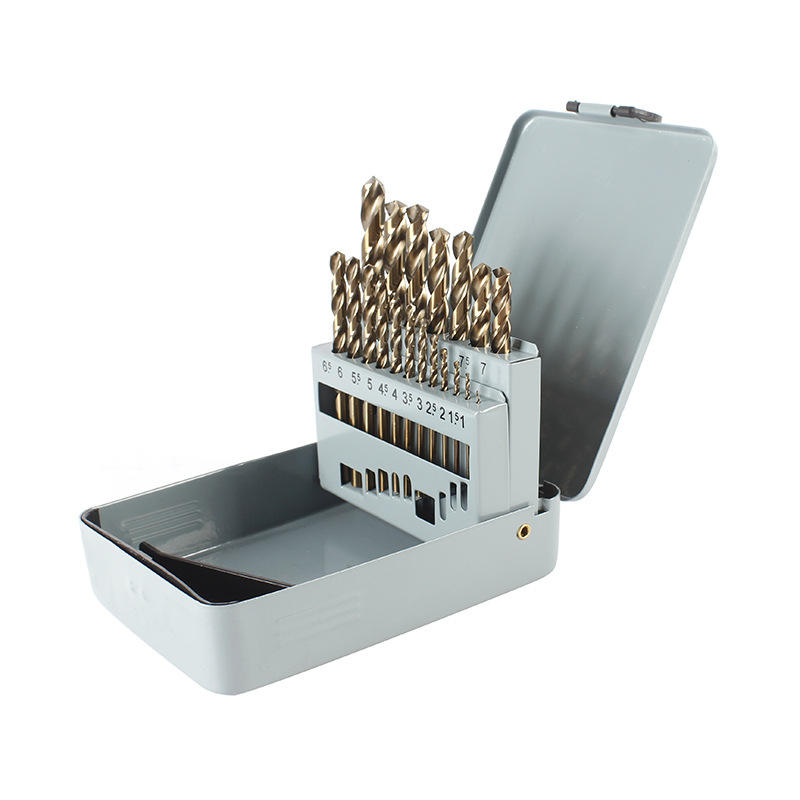 ชุดดอกสว่านเกลียวซิลเวอร์เบลด 19 ชิ้น โคบอลต์เหล็กกล้าความเร็วสูง สำหรับเจาะโลหะ ผิวเคลือบทอง