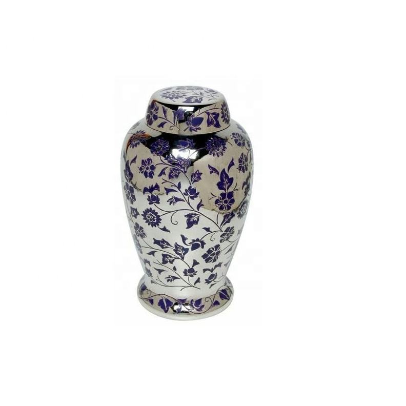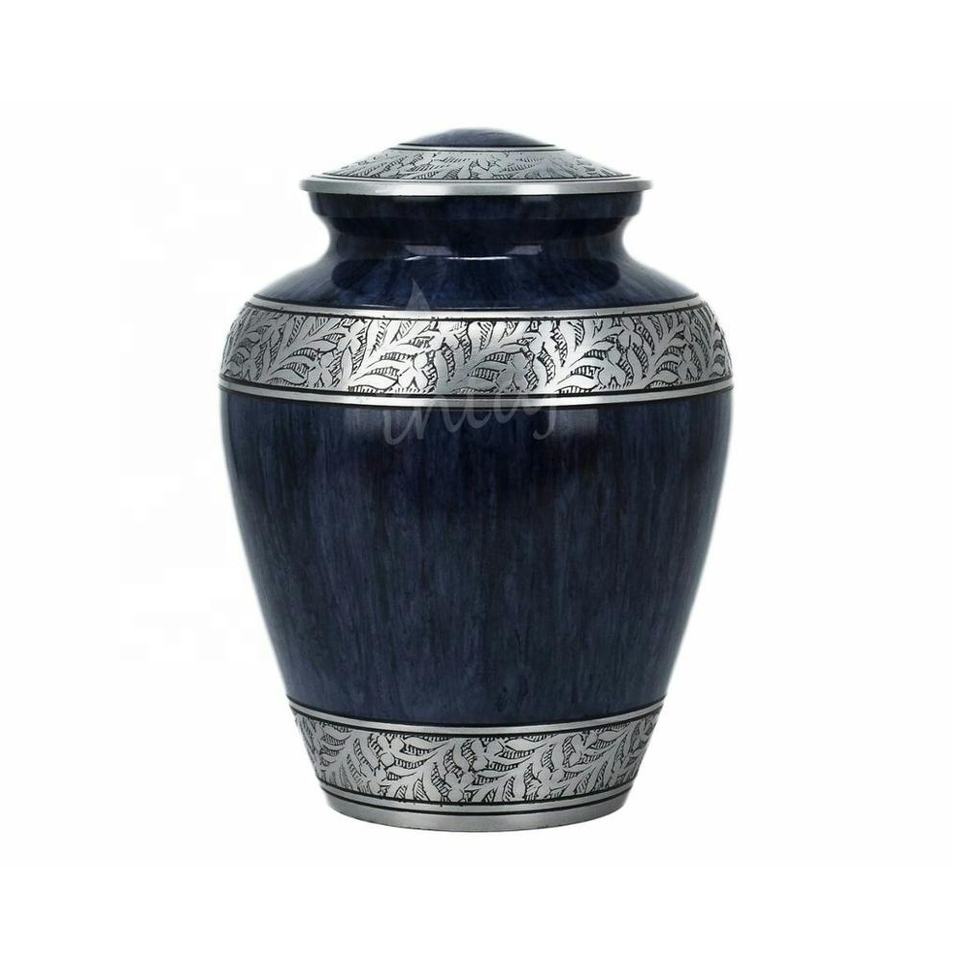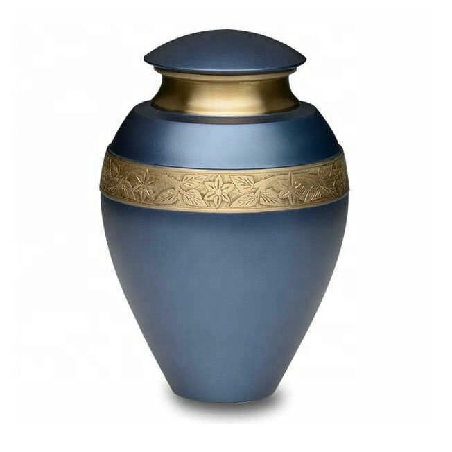 เงินสีฟ้าดอกไม้งานศพผู้ใหญ่โกศศพอุปกรณ์จากอินเดียโกศทองเหลืองสำหรับเถ้ามนุษย์ยังคงอยู่