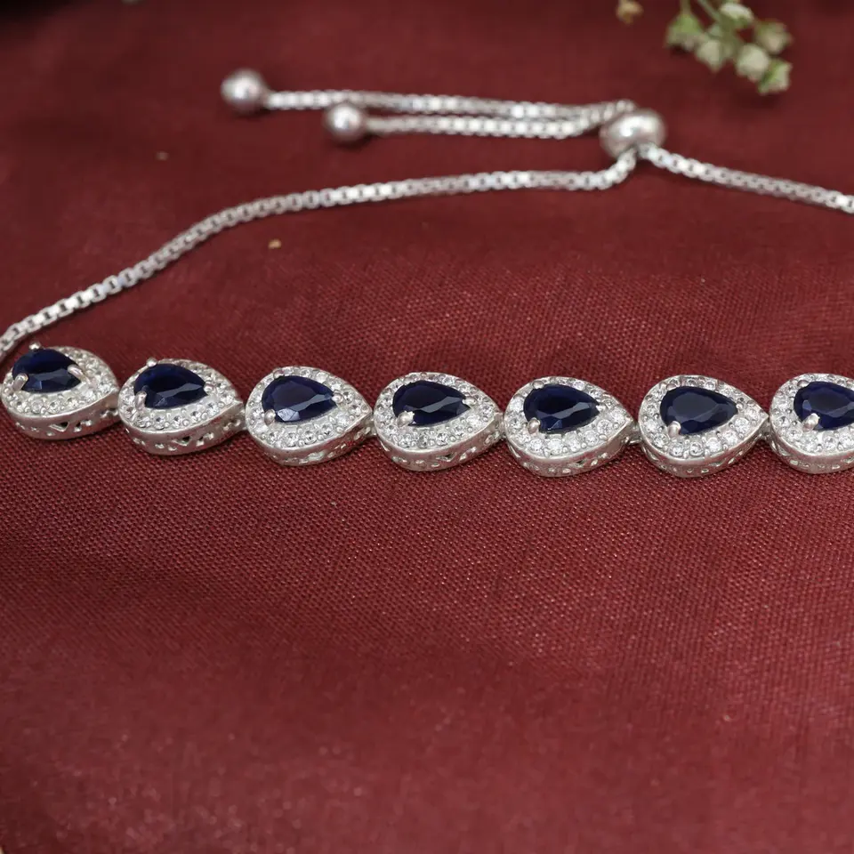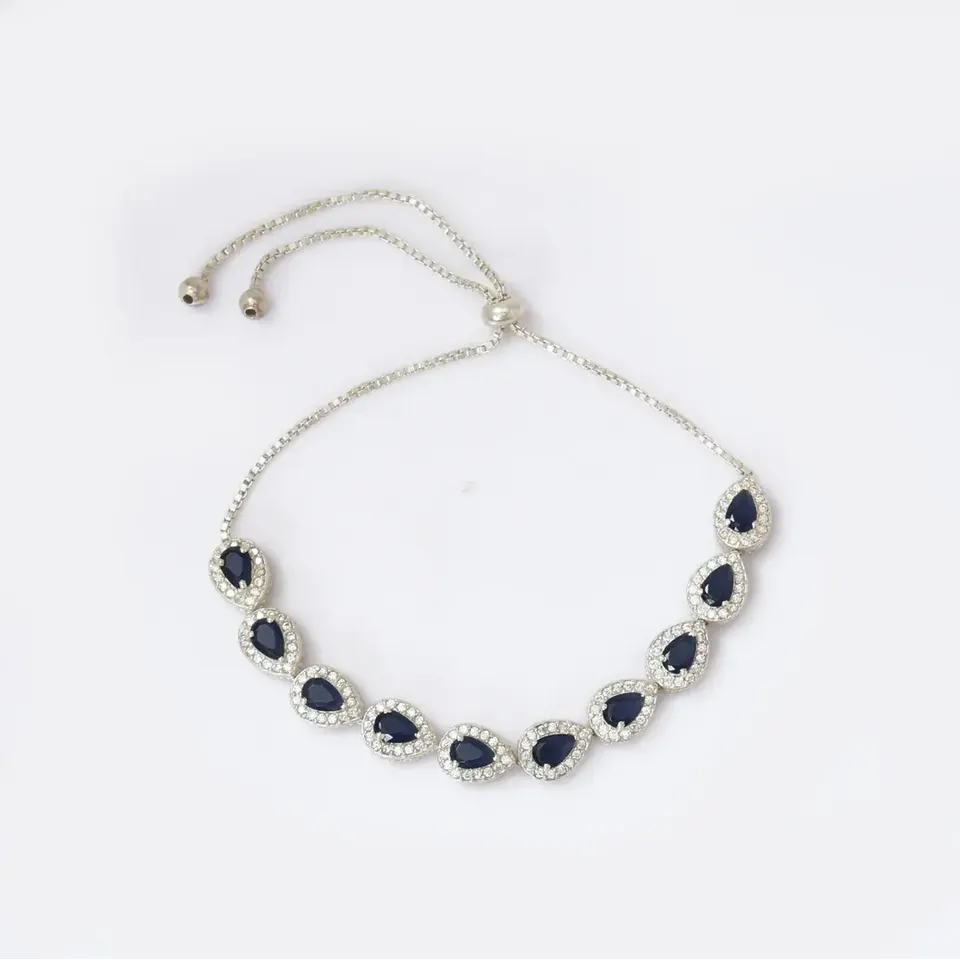สร้อยข้อมือเงินประดับพลอยไพลินสีน้ำเงินทรงหยดน้ำ ของขวัญแฟชั่นสำหรับผู้หญิง