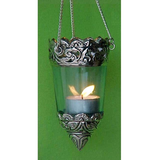 ที่ใส่เทียนทีไลท์แบบแขวนทำจากทองเหลืองสีเงิน & กระจกใสสำหรับตกแต่งบ้านห้องนั่งเล่นระเบียงและสวน