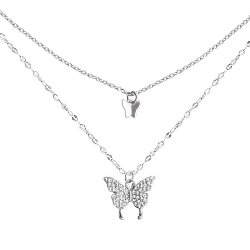 สร้อยโซ่จี้ผีเสื้อสีเงินสร้อยโชคเกอร์แบบชั้นนางฟ้าเครื่องประดับโซ่อันงดงามสำหรับ Eboy Eegirl ผู้หญิงผู้ชาย