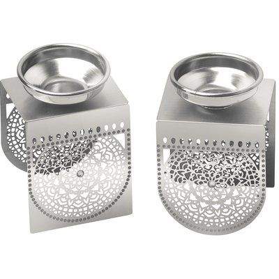 เชิงเทียนสีเงินคู่ที่วางเทียนทีไลท์โลหะตัดด้วยเลเซอร์เชิงเทียนตกแต่งบ้านทันสมัยชุดเชิงเทียน