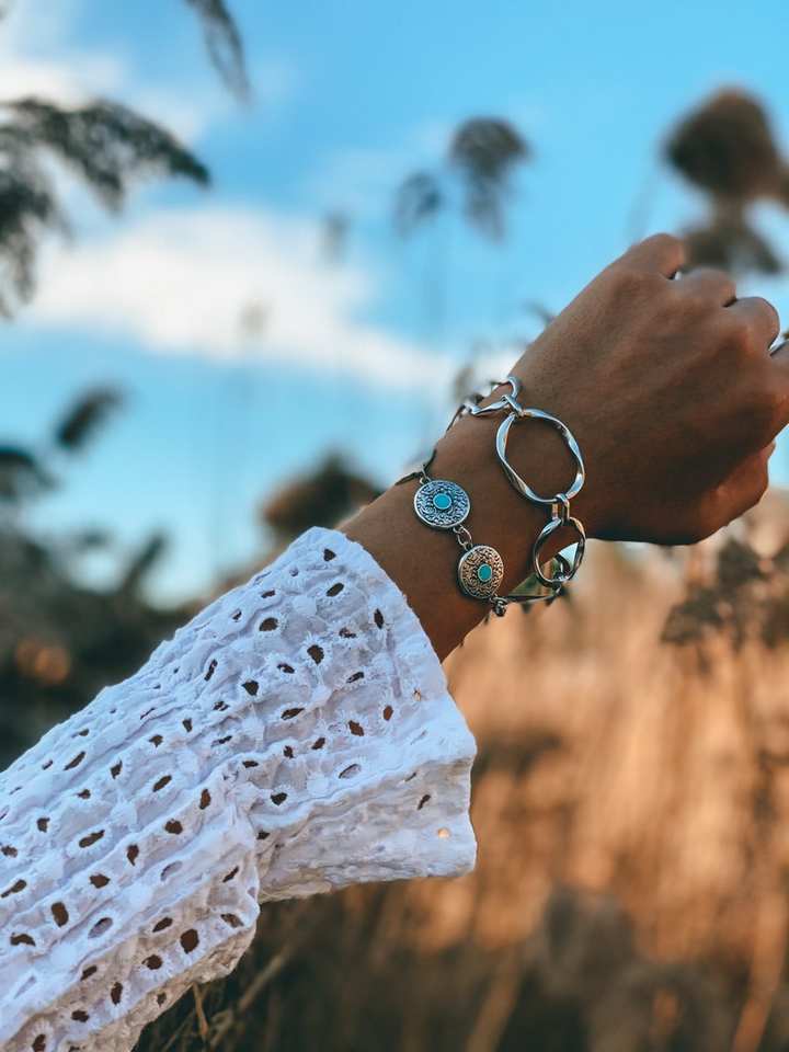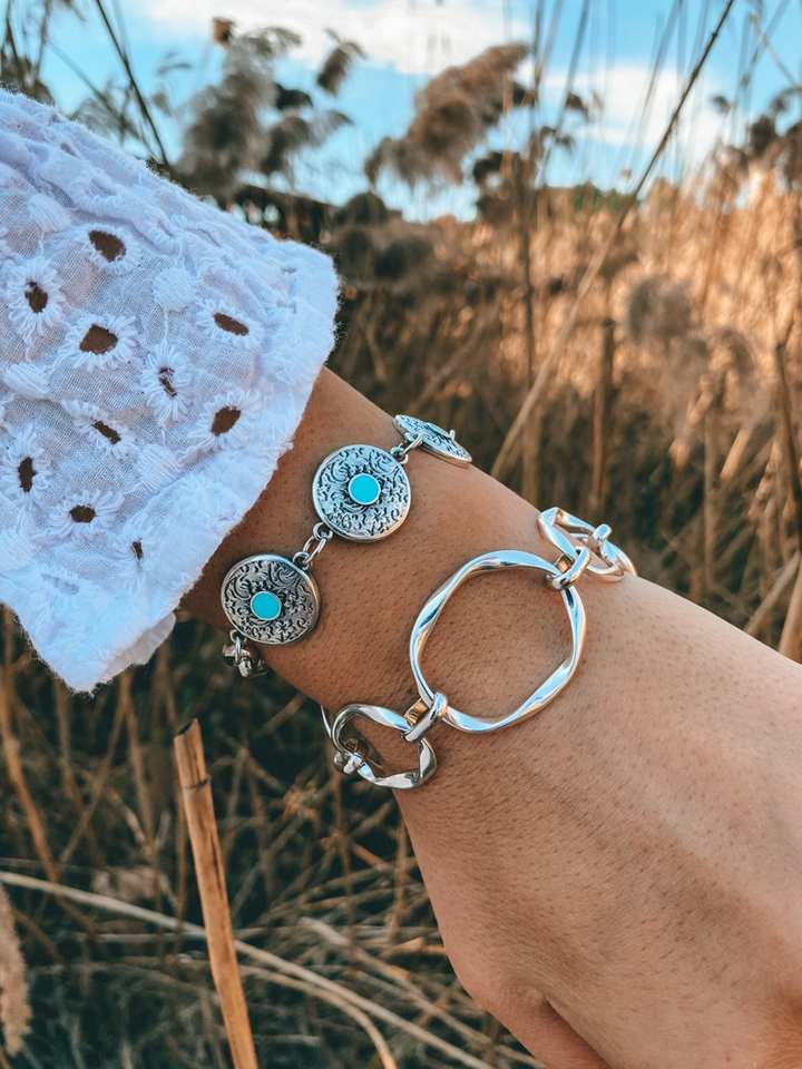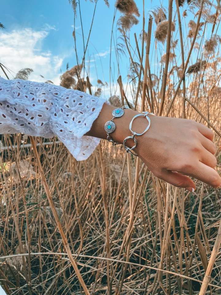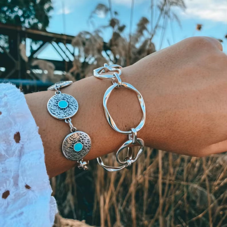 สร้อยข้อมือลูกปัดสีเงินพร้อมพลอยหยกสีเขียวโซ่กว้างของขวัญสำหรับเธอสัญญาของขวัญทำด้วยมือจากวัสดุธรรมชาติ
