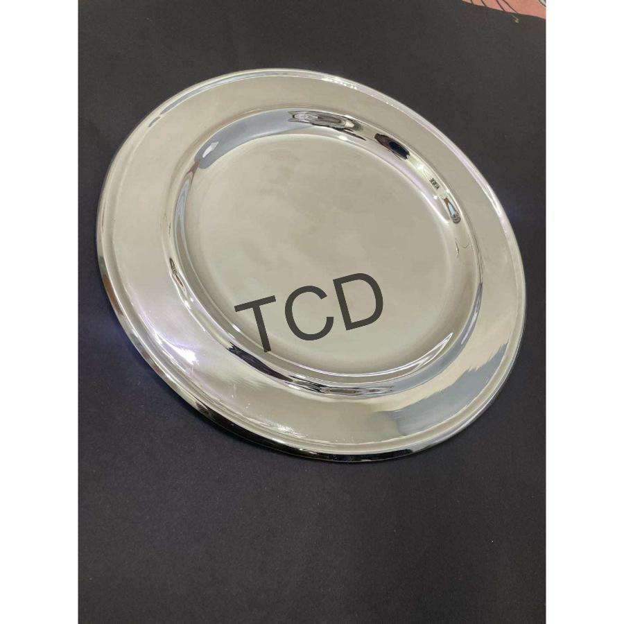 จานรองอาหารเงิน งานฝีมือ รูปทรงกลม เส้นผ่านศูนย์กลาง 25 ซม. จานทองเหลืองสำหรับร้านอาหาร อุปกรณ์เสิร์ฟอาหาร จานเสิร์ฟอาหาร รับทำโลโก้ตามสั่ง