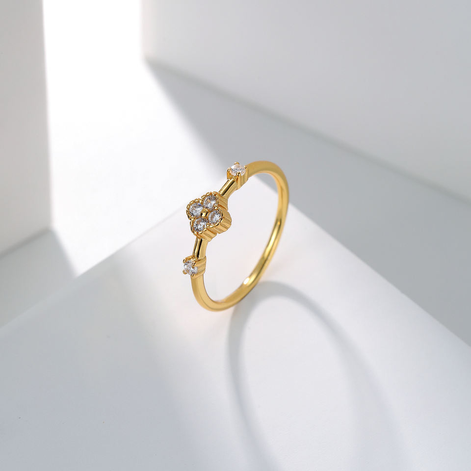 แหวนเงินสำหรับเมืองเครื่องประดับพลอยเพทายสีขาวดอกไม้เฉพาะบุคคลเครื่องประดับเงิน925 18K แหวนชุบทอง18K ขายส่ง