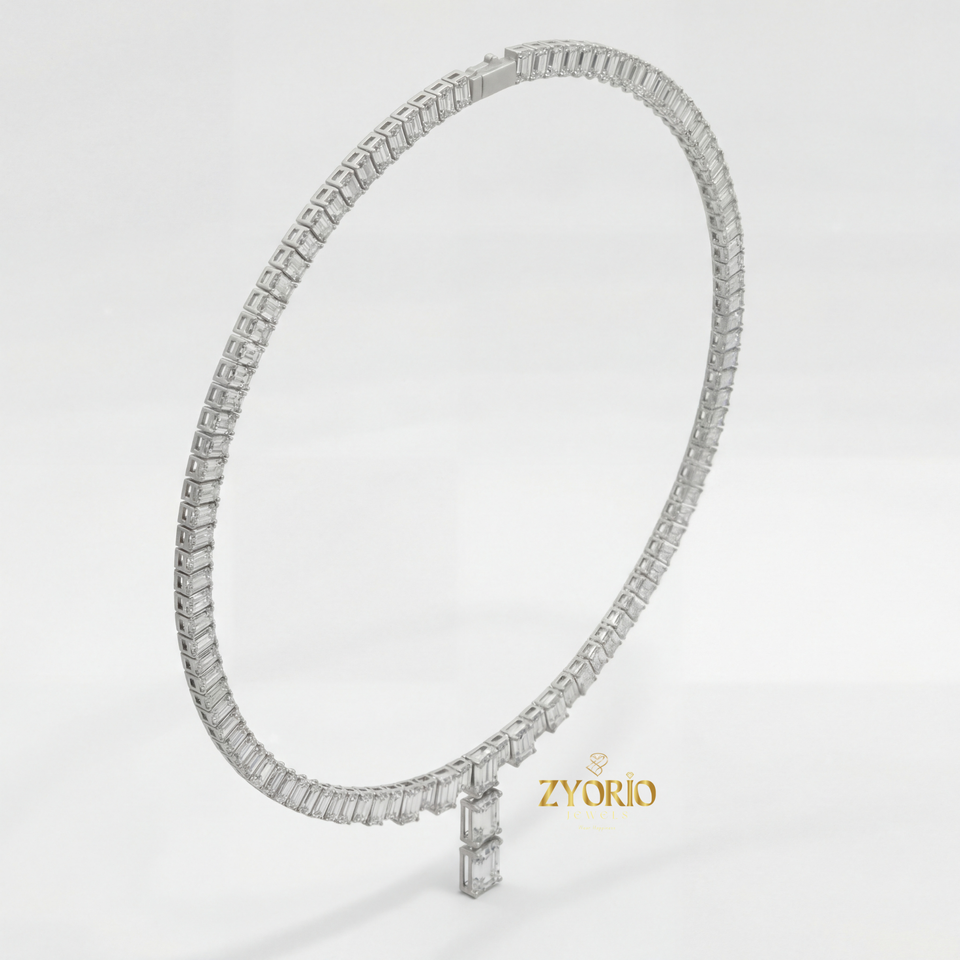 สร้อยคอจี้เพชรคลาสสิกสีเงินสำหรับผู้หญิง ดีไซน์แบบโซ่ ประดับเพชรเลี้ยงในห้องปฏิบัติการ เหมาะสำหรับงานหมั้น งานแต่งงาน หรืองานเลี้ยง สง่างามเหนือกาลเวลา หรูหรา