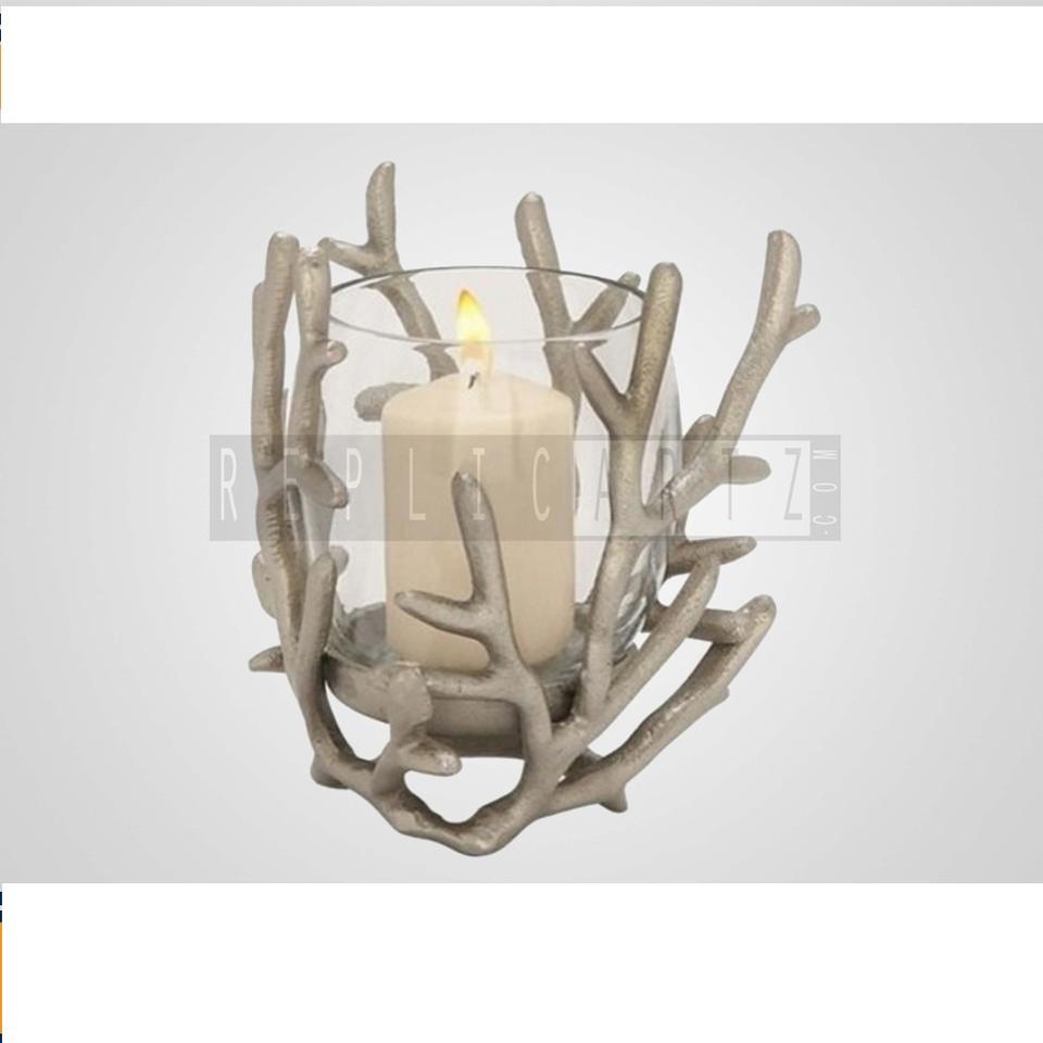 แก้วใสสีเงินรูปปะการังถ้วยเทียนที่วางแก้วอลูมิเนียมขนาด6นิ้วสำหรับตกแต่งบ้านวันวาเลนไทน์งานแต่งงานโลหะ
