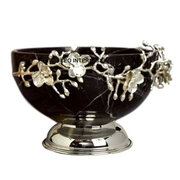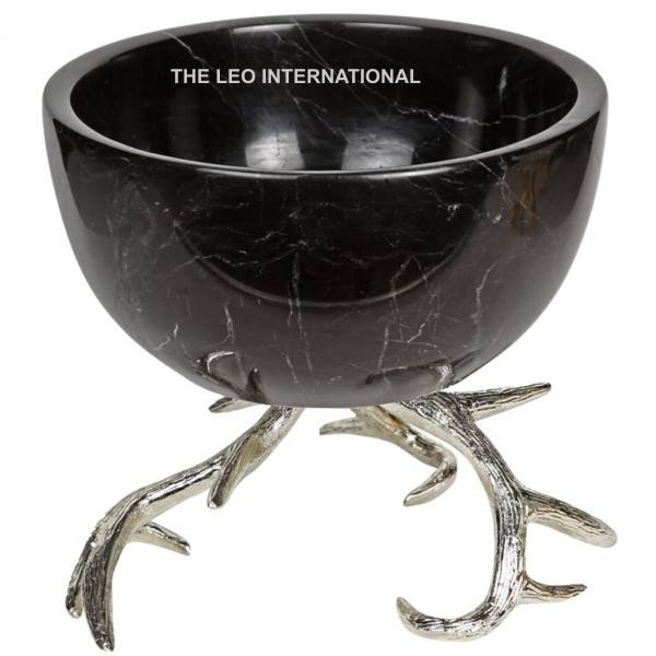 ชามดีไซน์รูปเขากวางอลูมิเนียมสแตนเลสโลหะสีเงินชามตกแต่งบ้านสไตล์ไม่เหมือนใครทันสมัย