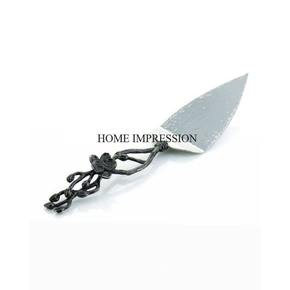 เซิร์ฟเวอร์เค้กขัดเงาเงาพร้อมด้ามดอกตูมสีดำและสีทอง
