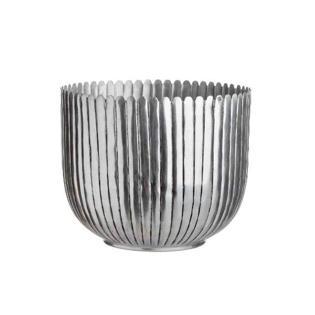 กระถางต้นไม้โลหะขัดเงาพร้อมขาไม้สีเงินกระถางต้นไม้ในร่ม