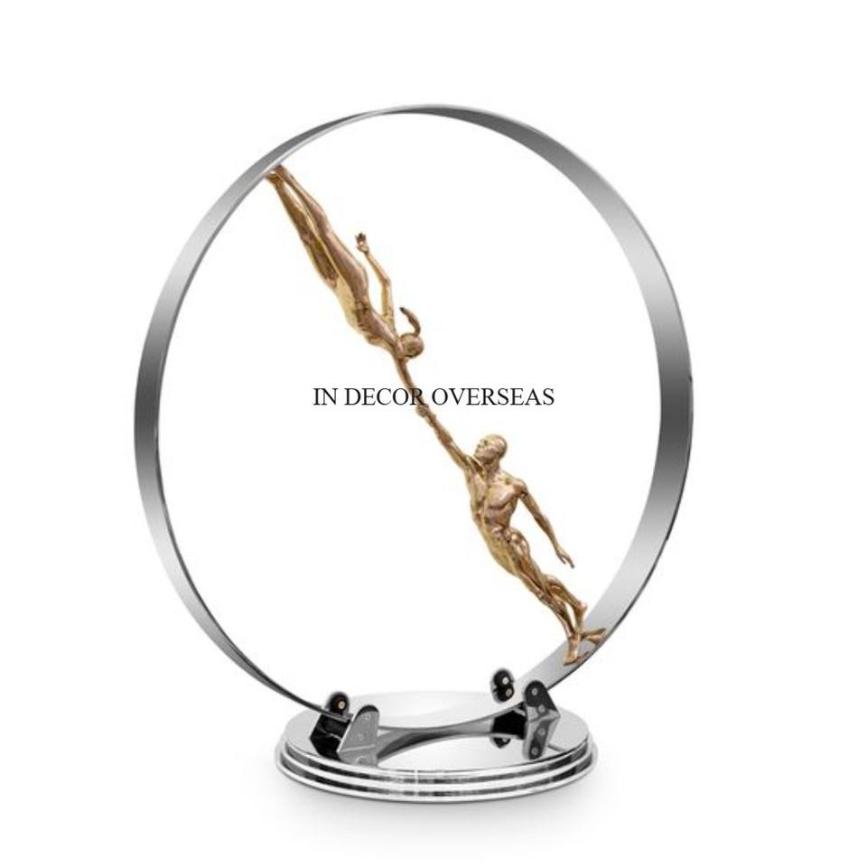 อุปกรณ์ตกแต่งล็อบบี้ของบ้านและโรงแรมรูปปั้นอะลูมิเนียมเคลือบเงาสีเงินเคลือบเงา