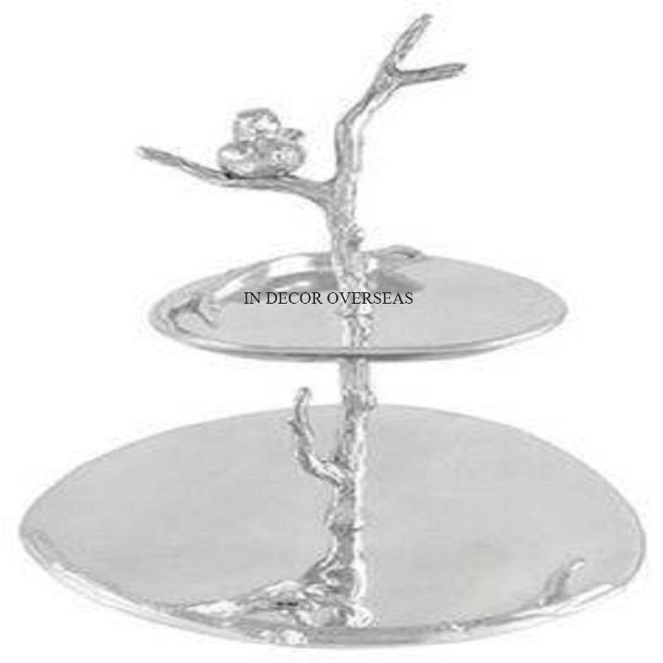 ฐานตั้งเค้กโลหะสำหรับนักออกแบบลายดอกลิลลี่ชุบทองขัดเงาขัดเงาสีเงินเกรดสูง