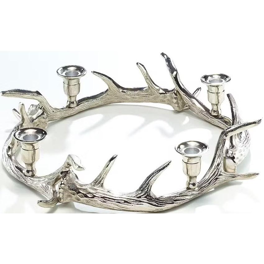 เชิงเทียนรูปฮอร์นสีเงินพร้อมหลุมโลหะ4หลุมสำหรับตกแต่งงานคริสต์มาสและงานปาร์ตี้มีขนาด44x8x44ซม.