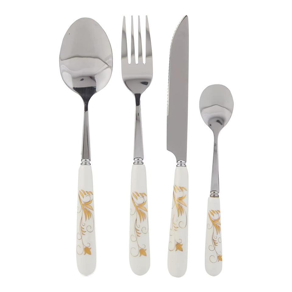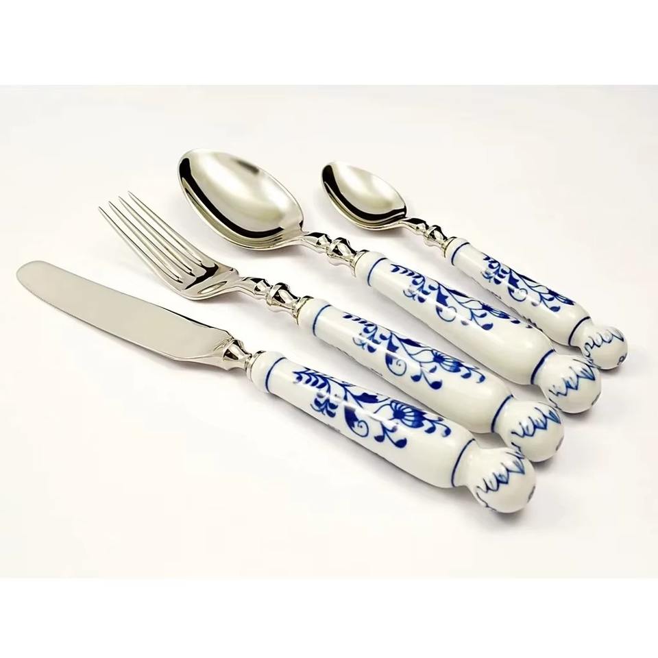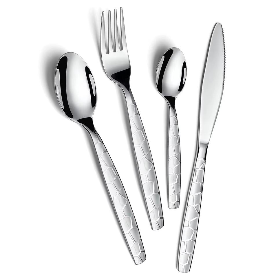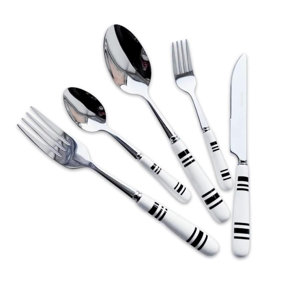 ชุดช้อนส้อมสเตนเลสสตีลสีเงินชุดช้อนส้อมมีดมีดออกแบบสำหรับโต๊ะอาหาร5ชิ้น