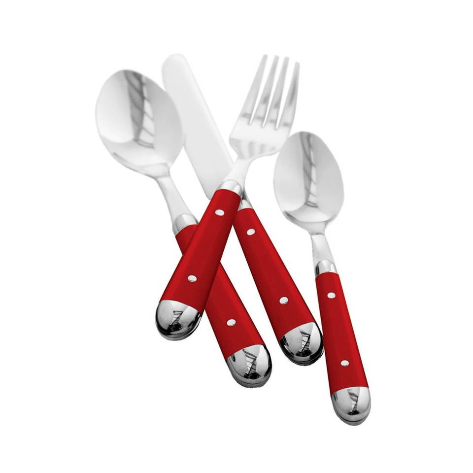 ชุดเครื่องใช้บนโต๊ะอาหารทำจากสเตนเลสสตีลสีเงินเหมาะสำหรับโต๊ะอาหารโต๊ะในบ้านคาเฟ่ชุดมือจับโลหะสีแดงจำนวน4ชิ้น
