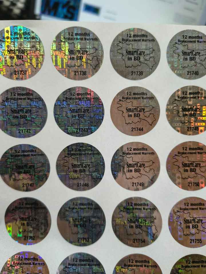 ฉลากกาวโฮโลแกรมทรงกลมสีเงินพร้อมกระดาษกาวพิมพ์ความร้อนดิจิเทค เลเบล พี 4
