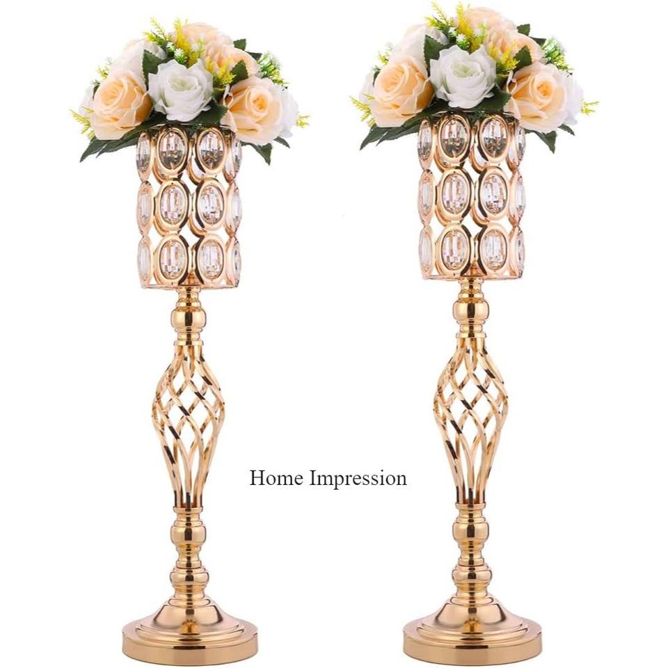 แจกันทรงทรัมเป็ตสีเงินขัดเงาเคลือบทอง ชุด 2 ชิ้น สำหรับตกแต่งดอกไม้งานแต่งงาน ของประดับตกแต่งโต๊ะกลาง