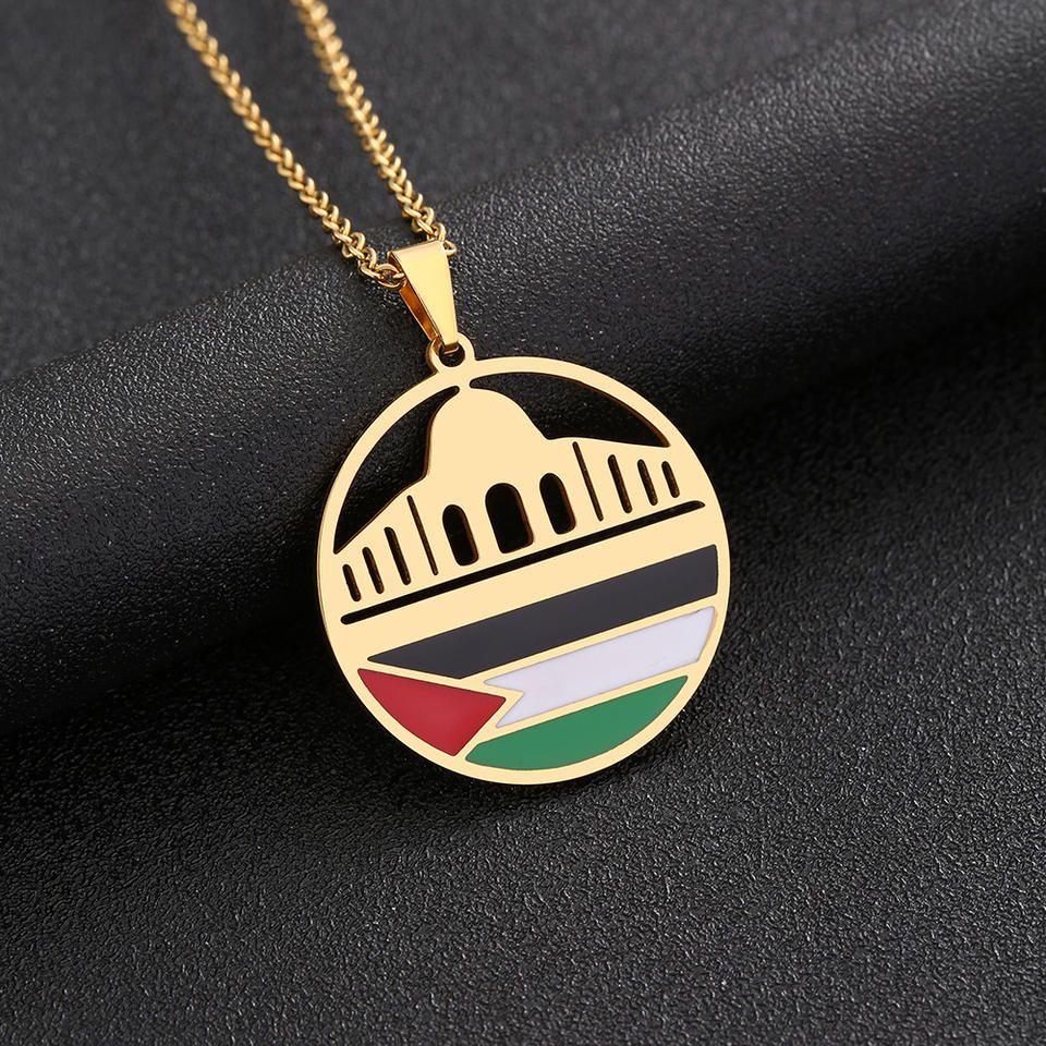 สร้อยคอสแตนเลสสตีลสีเงิน AKSA Temple Palestinian สร้อยคอหรูหราพร้อมส่ง