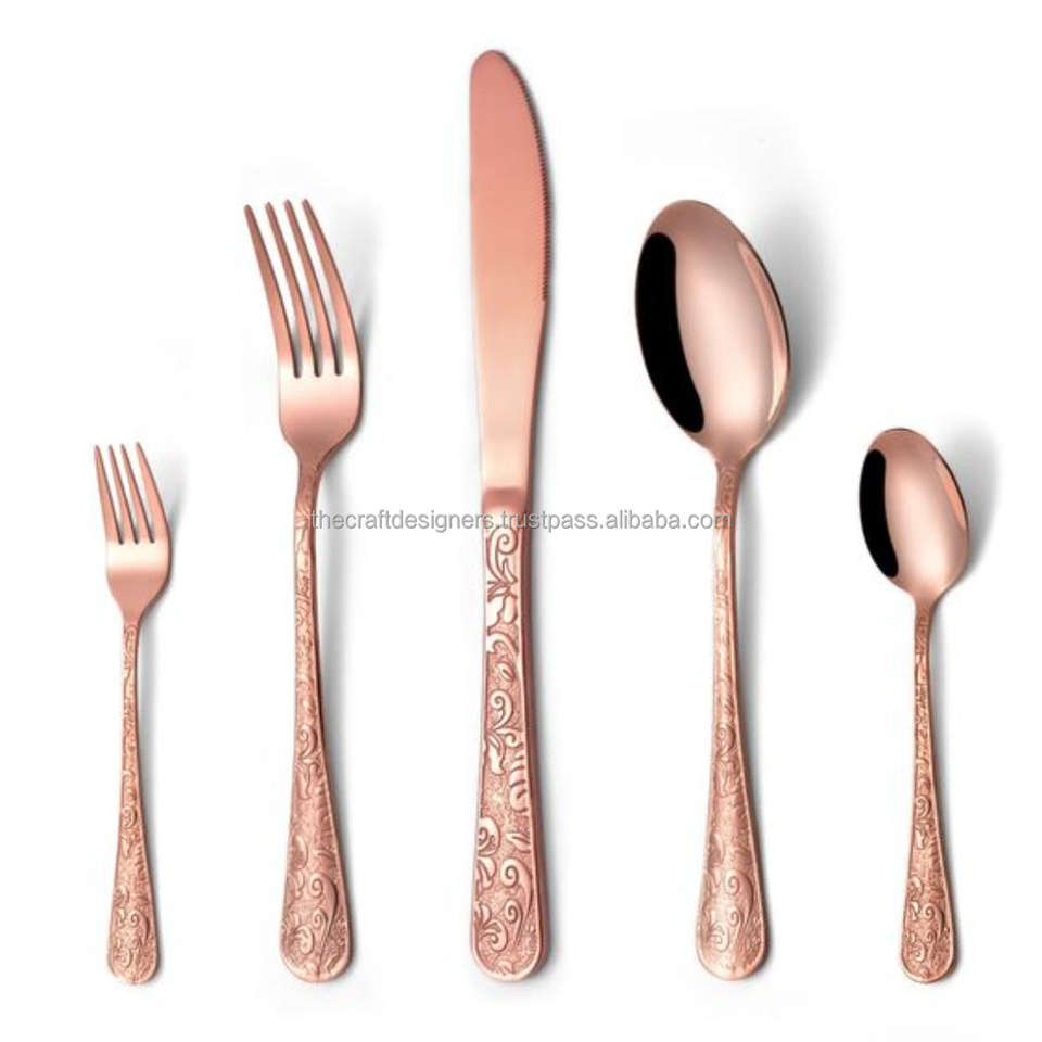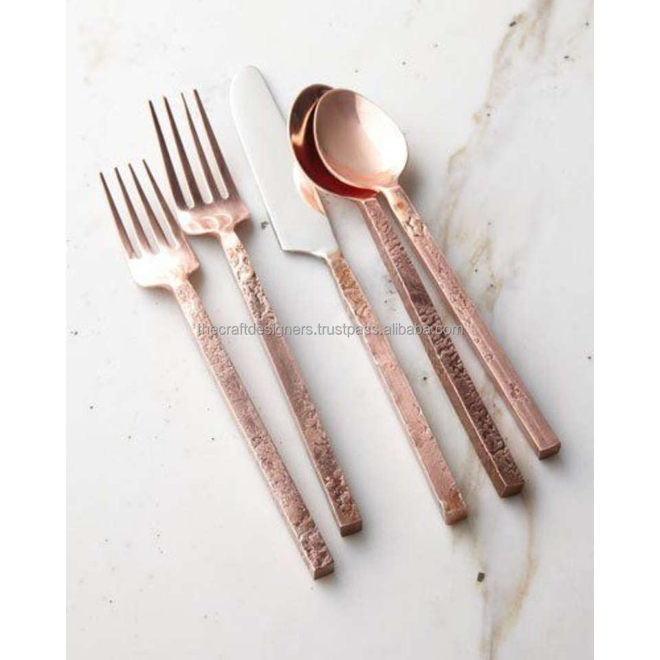 ชุดช้อนส้อมสแตนเลสสำเร็จรูปสีเงินและทองแดงสำหรับร้านอาหารและโรงแรมชุดเครื่องเงินพร้อมโลโก้