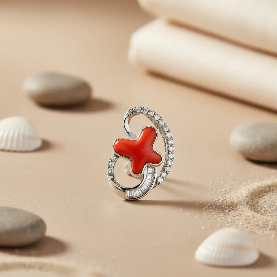 วัสดุ:เงินแท้ 925,ปะการัง,เซอร์โคเนียลูกบาศก์