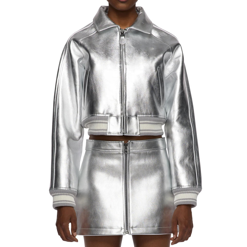 เสื้อแจ็คเก็ตหนังวัวสีเงิน แต่งกลิตเตอร์ สไตล์ฮิปฮอป ทรงบ็อกซี่ ครอป โอเวอร์ไซส์ สำหรับฤดูหนาว ไซส์พลัส สำหรับผู้หญิง