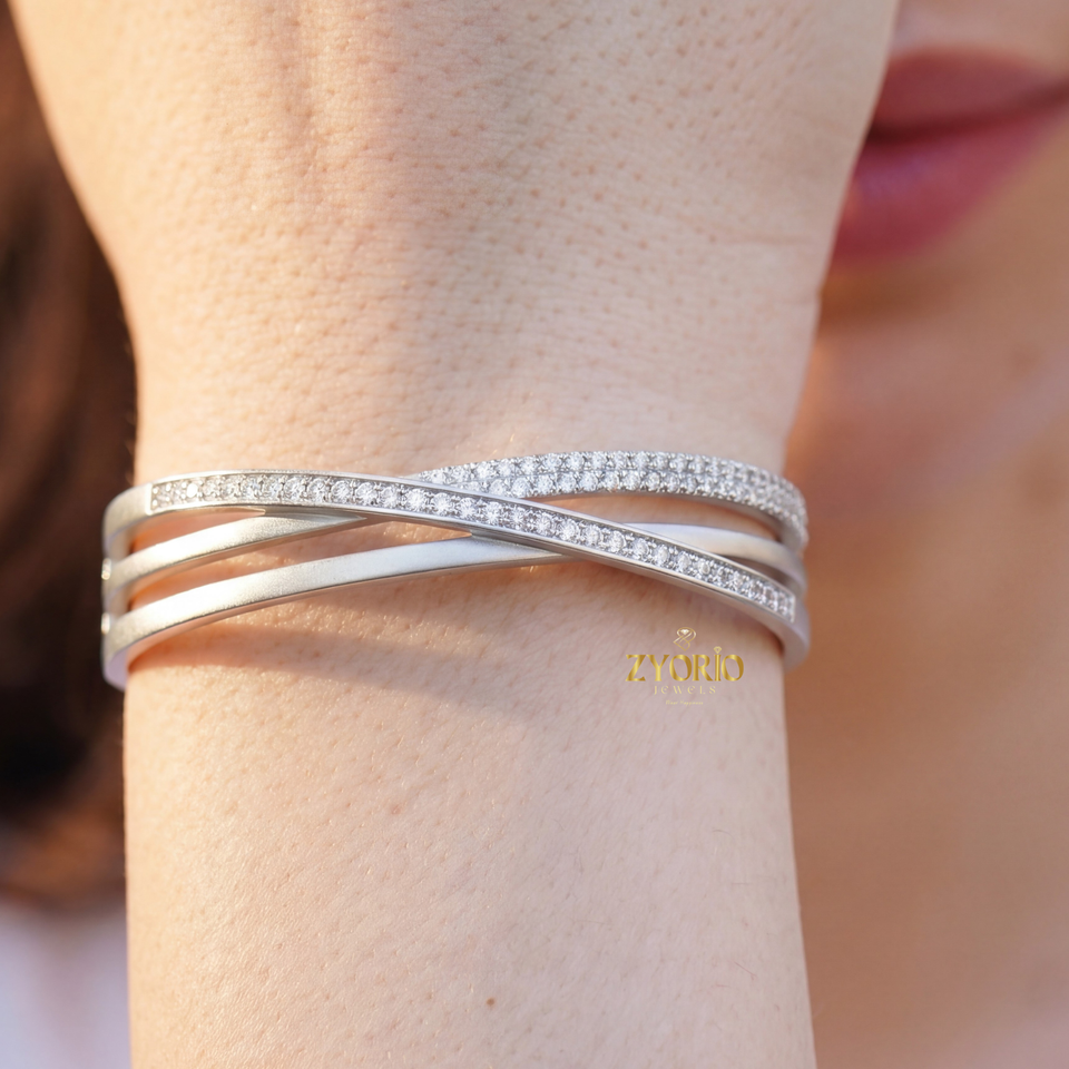 กำไลข้อมือเงินแท้ 925 ประดับเพชรเพาะเลี้ยงทรงคลาสสิก ระยิบระยับ สำหรับผู้หญิง ของขวัญ งานแต่งงาน งานเลี้ยง พิธีทางศาสนา