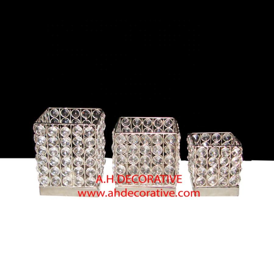 ที่ยึดทีไลท์ทำจากคริสตัลสีเงินสำหรับตกแต่งระเบียงบ้านโต๊ะสำเร็จรูปทำด้วยมือทำจากโลหะคริสตัลคำปฏิญาณ