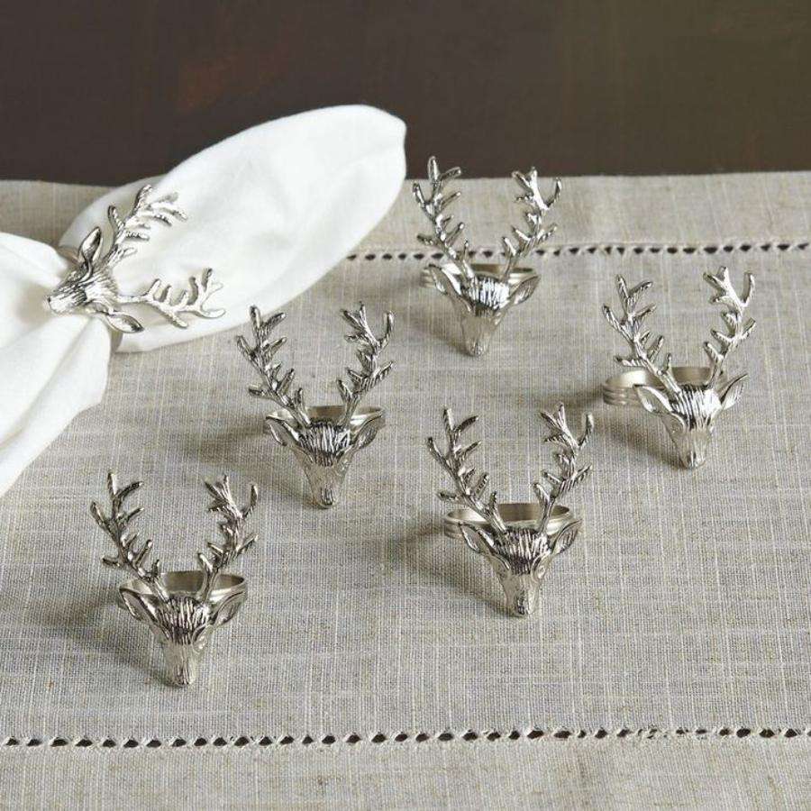 แหวนผ้าเช็ดปากกวางสีเงินนำมาใช้ใหม่ได้2025ที่ใส่ผ้าเช็ดปากคริสต์มาสห่วงทิชชู่สำหรับตกแต่งโต๊ะอุปกรณ์เสริม
