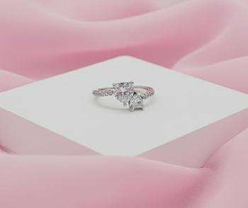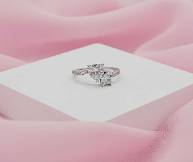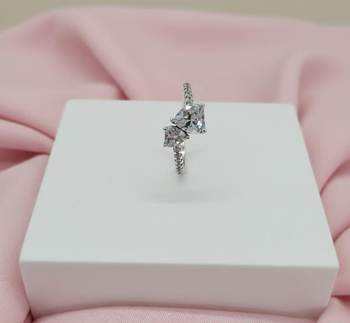 แหวนหัวใจคู่สีเงินประดับเพชรคิวบิกเซอร์โคเนียเครื่องประดับรักสำหรับผู้หญิงแฟชั่นของขวัญสุดเก๋