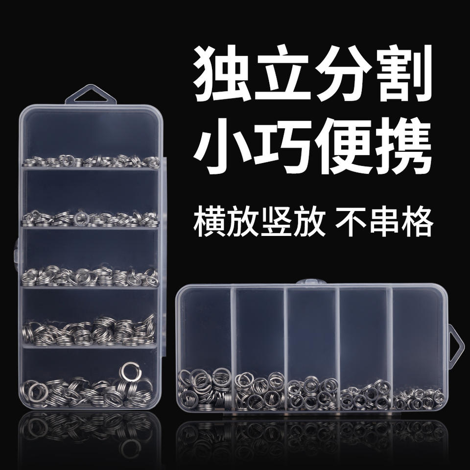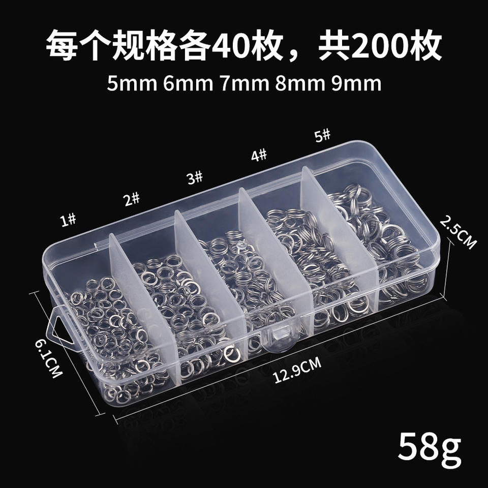 ชุดตัวเชื่อมต่อแบบแบนสแตนเลสสตีล 200 ชิ้น พร้อมกล่องแบ่ง 5 ช่อง สำหรับตกปลาแบบวงแหวนคู่สีเงิน