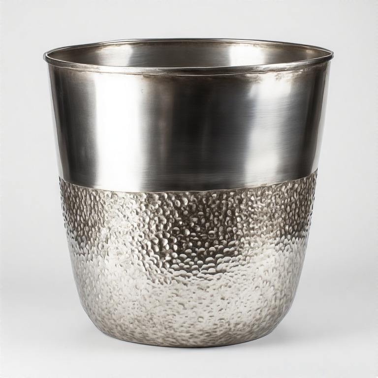 กระถางสีเงินรูปทรงโค้งมนแบบคลาสสิกและพื้นผิวแบบตอกหนาเหมาะสำหรับการออกแบบบ้านและการจัดแสดงหน้าร้าน