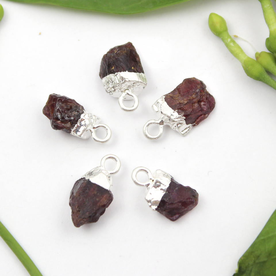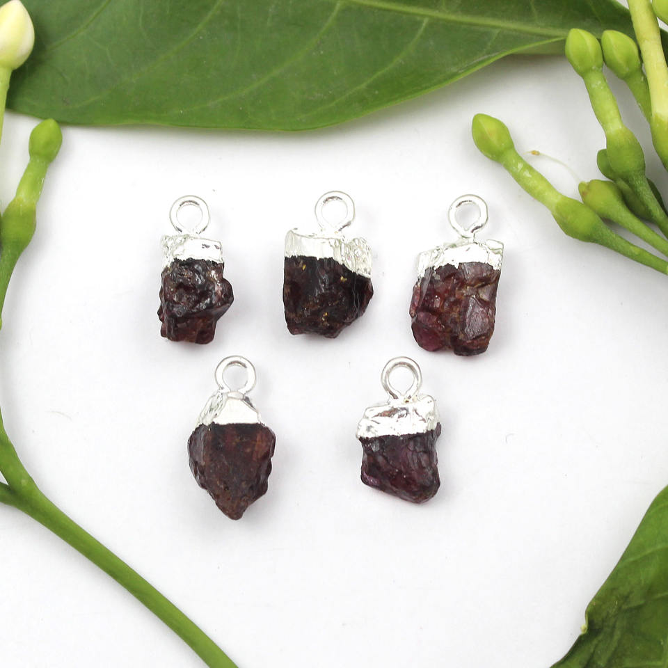 สร้อยคอเงินอิเล็กโทรเพลทแบบเดี่ยวทำขั้วต่อพลอยโกเมนหยาบแบบ DIY ค้นหาส่วนประกอบเครื่องประดับรูปร่างแฟนซี