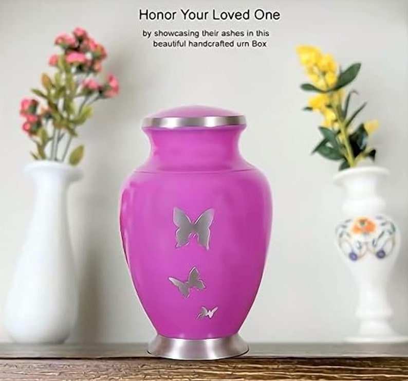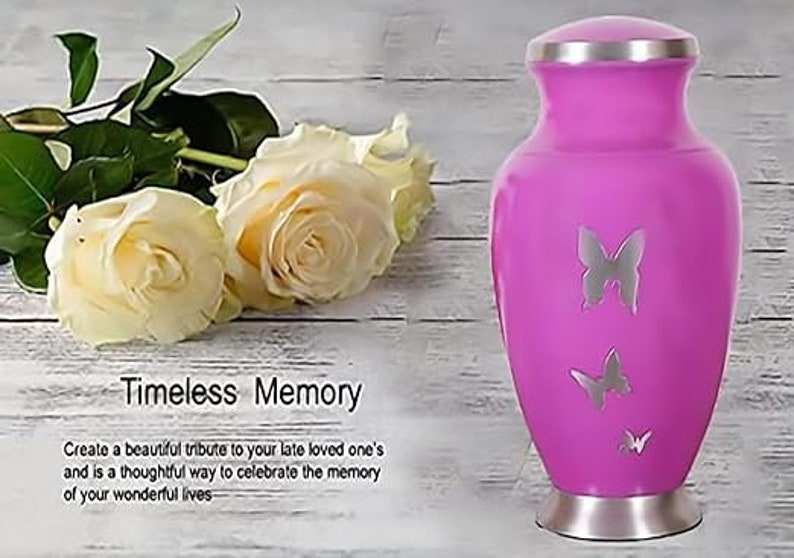โกศเผาอลูมิเนียมสลักสีเงินสำหรับขี้เถ้ามนุษย์สัตว์เลี้ยงเพศเมียสัตว์เลี้ยงสุนัขแมวโกศฝังศพขนาดใหญ่สำหรับผู้ใหญ่สีชมพู