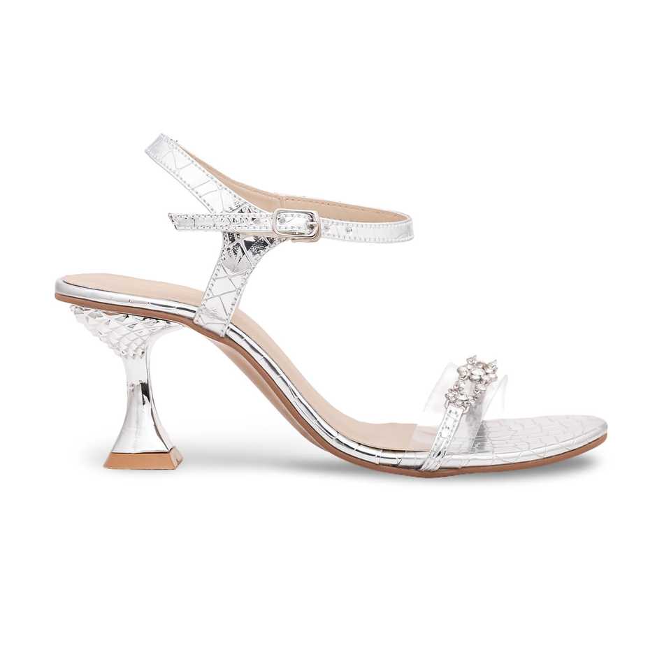 รองเท้าแตะส้นสูงแฟนซีสีเงินเปิดนิ้วเท้าสำหรับผู้หญิงปิดแบบผูกเชือกแฟชั่นสำหรับงานแต่งงานและ Parties-FN5567