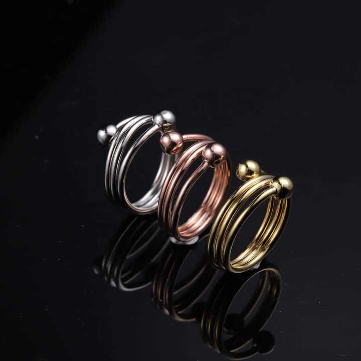 แหวนเงินแฟชั่นรูปงู ปรับขนาดได้ แม่เหล็กทองแดงแท้ ชุดแหวนสำหรับผู้หญิง แหวนรองจาน