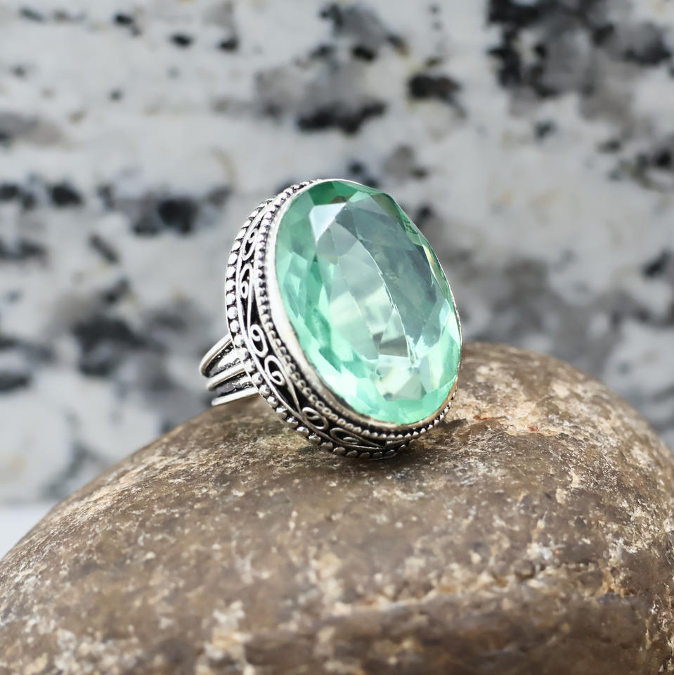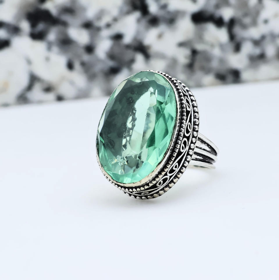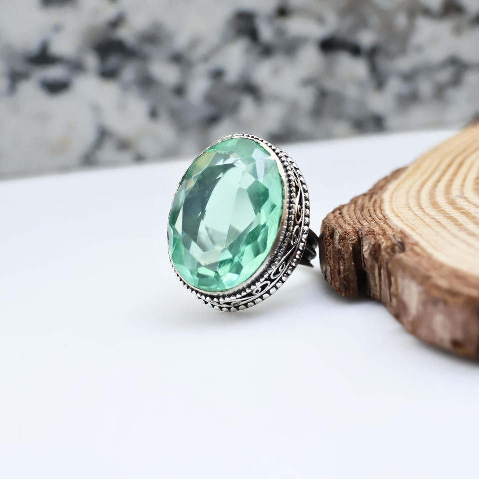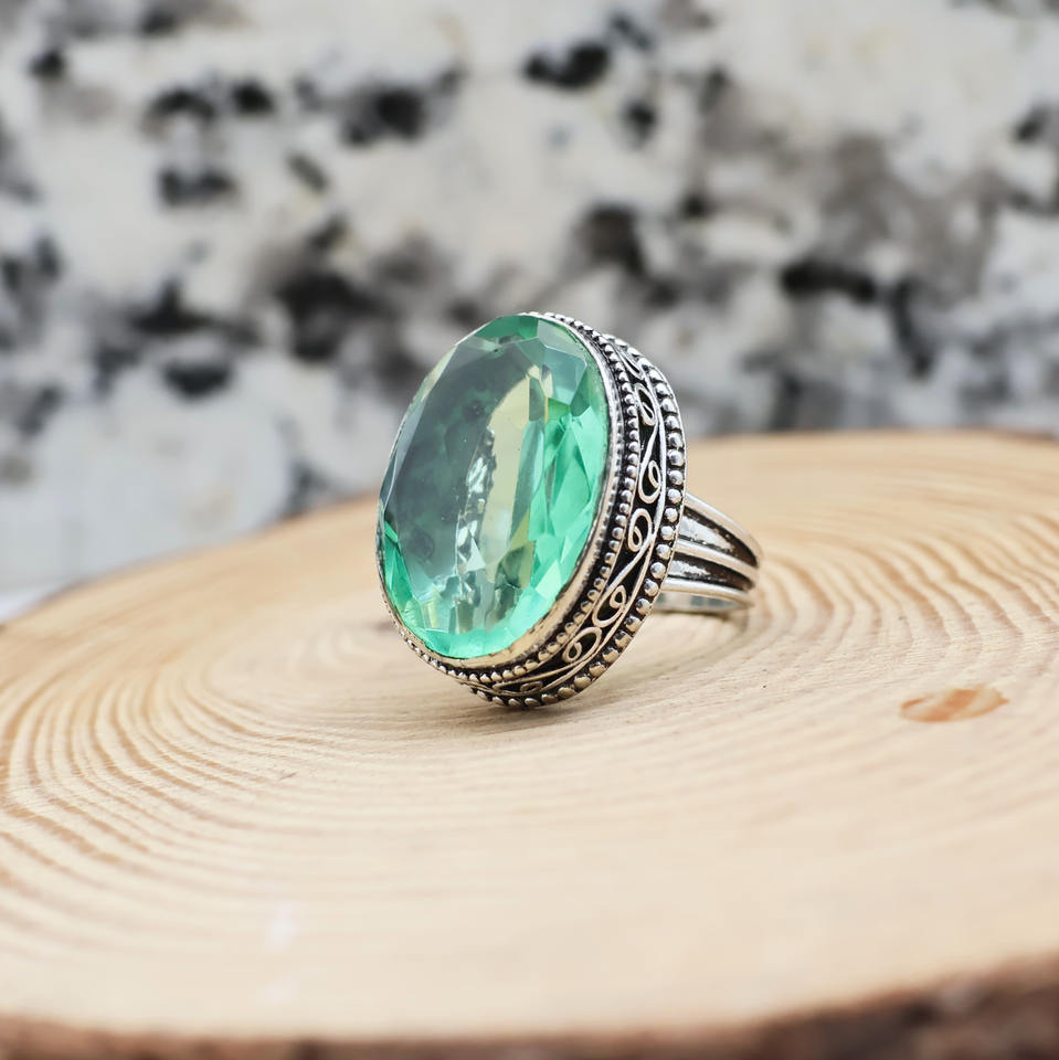 แหวนเพอริดอทดีไซน์วินเทจประดับพลอยสีเขียวรูปวงรีขนาดใหญ่ – เครื่องประดับสไตล์วินเทจ