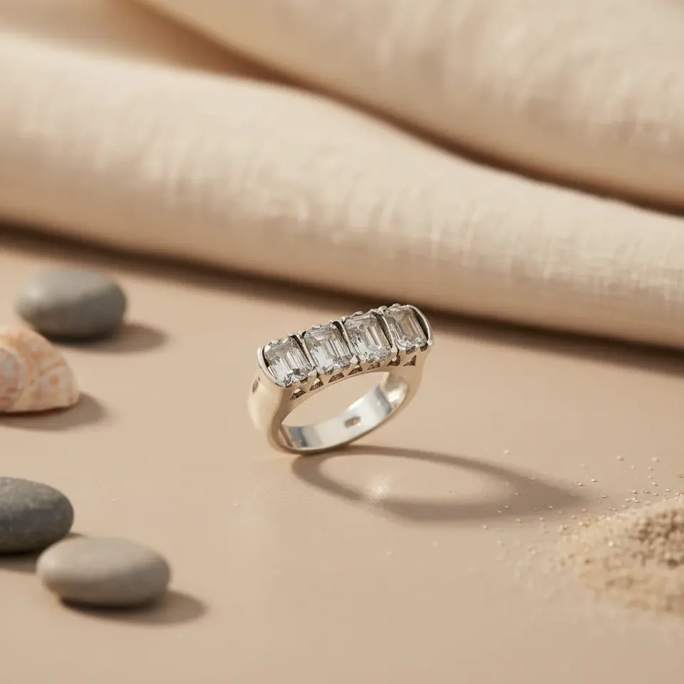 แหวนเงินแท้ทรงมรกตประดับมุกธรรมชาติ ชุบแพลตตินัมโรเดียม ฝังโรเดียม ของขวัญวันครบรอบสำหรับผู้หญิง