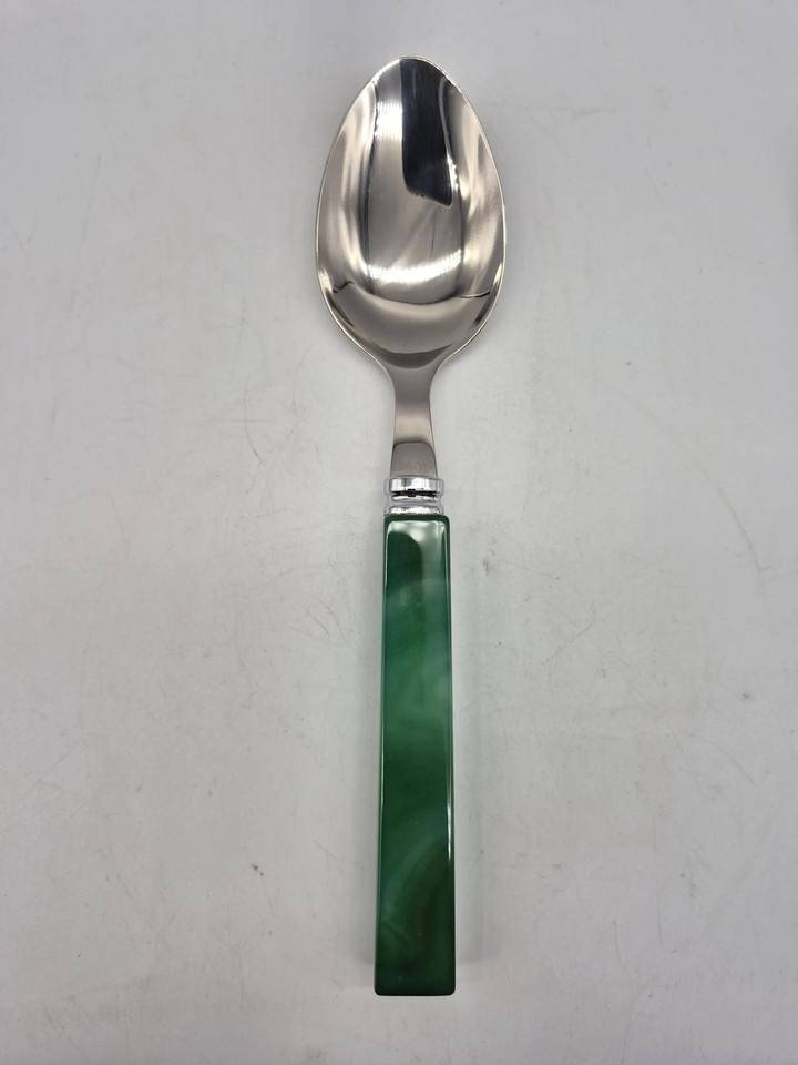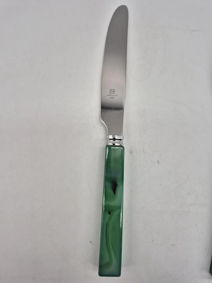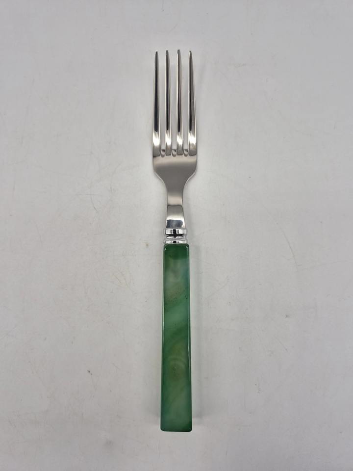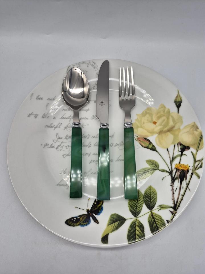 ชุดช้อนส้อมสำเร็จรูปสีเงินพร้อมที่จับเรซินสีเขียวหรูหราเครื่องใช้บนโต๊ะอาหารสำหรับรับประทานอาหารงานแต่งงานงานปาร์ตี้บ้านตกแต่งโต๊ะในครัว