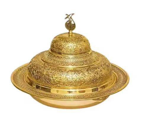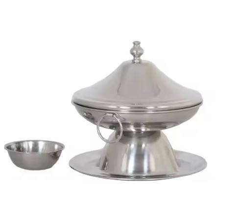 หม้อ khajoor ทำจากเงินพร้อมฝาและขาตั้งถ้วยช็อคโกแลตผลไม้ทำมือพร้อมที่วาง