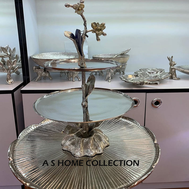 ที่ตั้งโชว์เค้กโลหะสีเงินสำเร็จรูปแบบพรีเมี่ยมทำด้วยมือมีคุณภาพสูงแท่นวางขนมอบสำหรับงานเลี้ยงวันเกิด