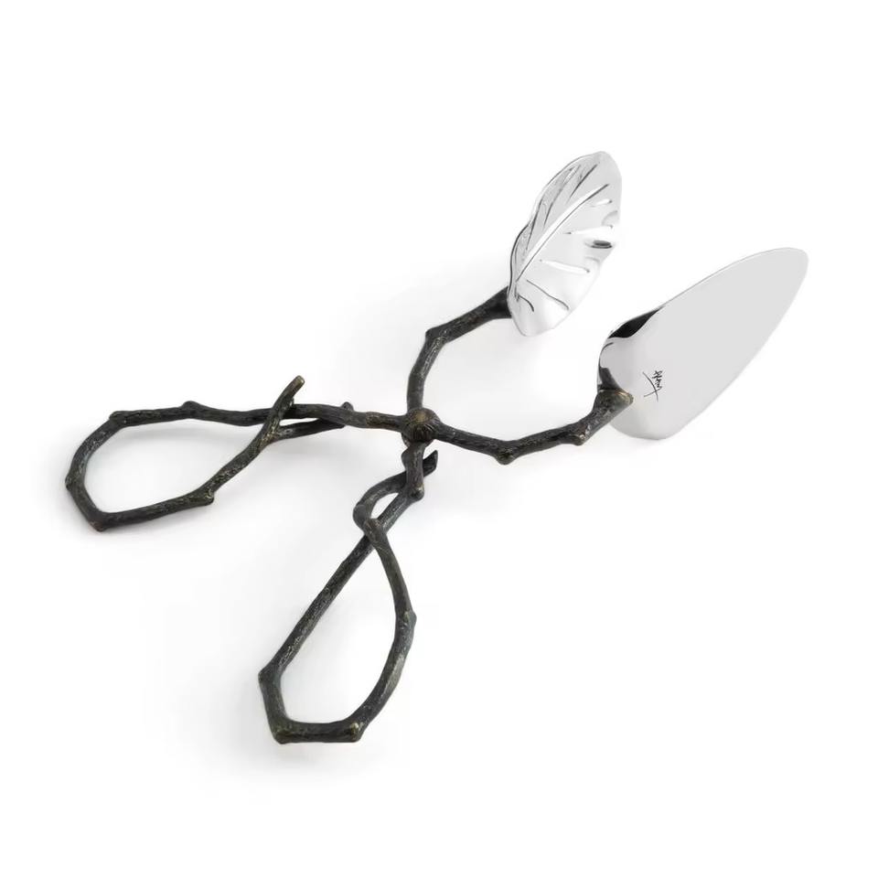 คีมคีบทองเหลืองตกแต่งทำจากโลหะเงินแบบวินเทจสำหรับห้องครัวสลัดขนมปังบาร์บีคิวของหวานและห้องครัวแบบบุฟเฟต์