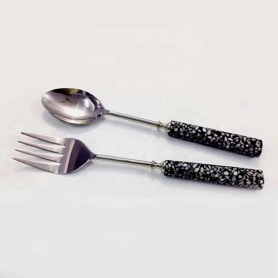 ชุดเครื่องใช้บนโต๊ะอาหารทำจากมิเรอร์สีเงินพร้อมด้ามจับเรซินสำหรับโรงแรมร้านอาหารและงานแต่งงานชุดเครื่องใช้บนโต๊ะอาหารที่ใช้แล้วสแตนเลส