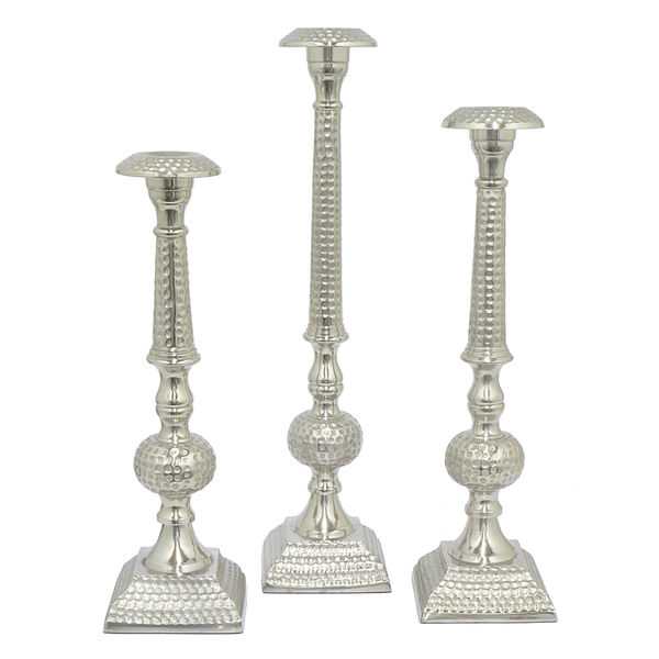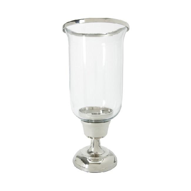 เชิงเทียนโลหะเคลือบสีเงินพร้อมเชิงเทียนแก้วสำหรับวางบนโต๊ะตรงกลาง