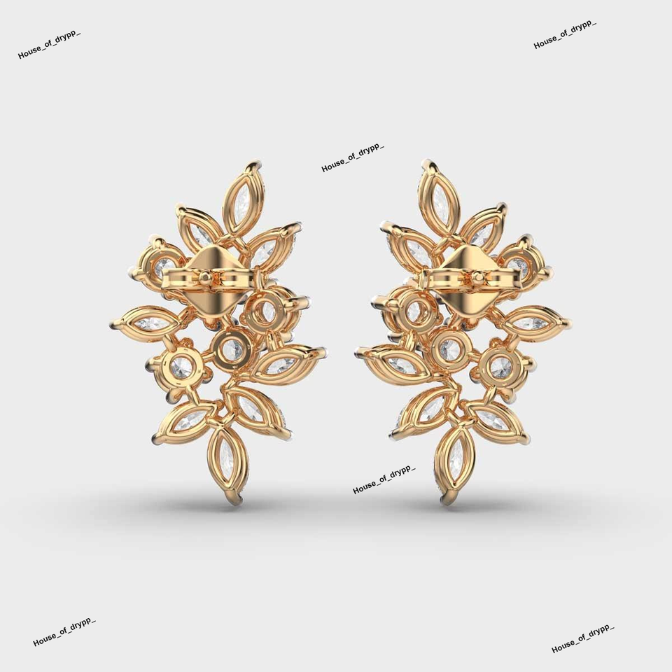 ต่างหูเงินชุบโรเดียมประดับเพชรโมอิสซาไนต์รูปดอกไม้หรูหรา ดีไซน์ใบไม้ระยิบระยับ เหมาะสำหรับงานปาร์ตี้และงานแต่งงาน