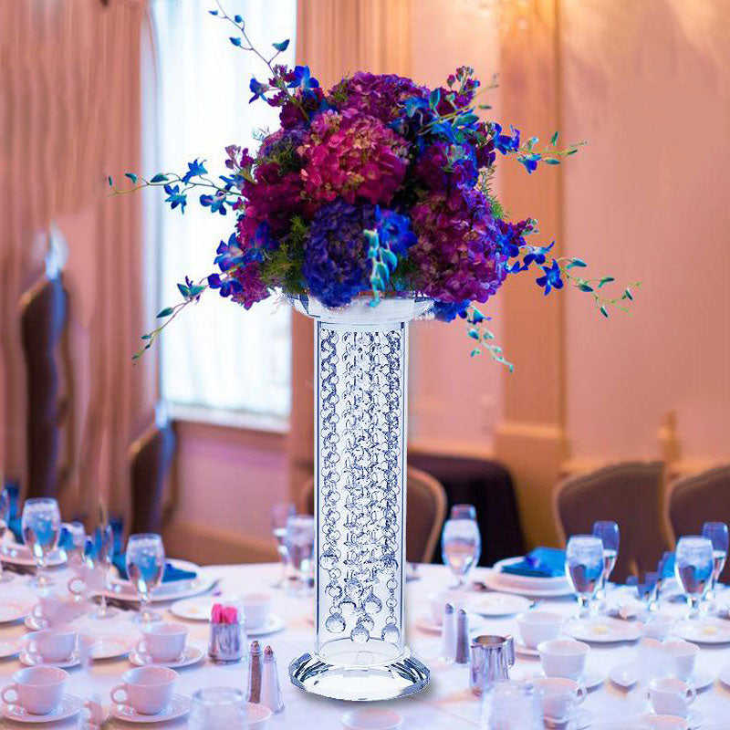 แจกันดอกไม้สีเงินพร้อมโคมระย้าประดับโต๊ะกลางโต๊ะทำจากคริสตัลที่วางดอกไม้ทำจากโลหะเป็นมิตรกับสิ่งแวดล้อมสำหรับอีสเตอร์