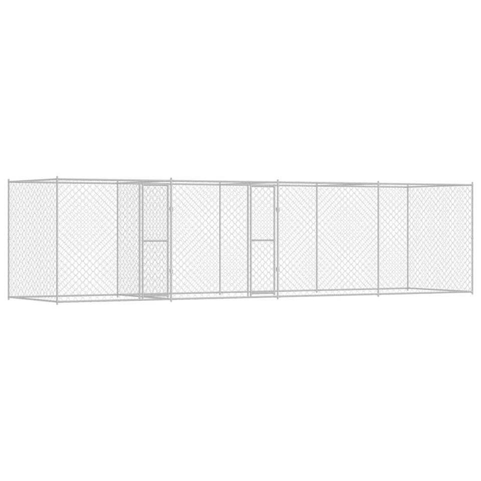 กรงสุนัขเหล็กชุบสังกะสีสีเงิน ขนาด 314.96 x 78.74 x 78.74 นิ้ว สำหรับผู้เลี้ยงสุนัข