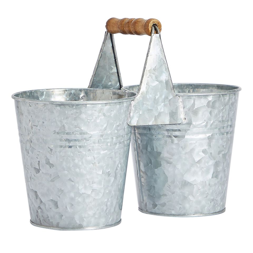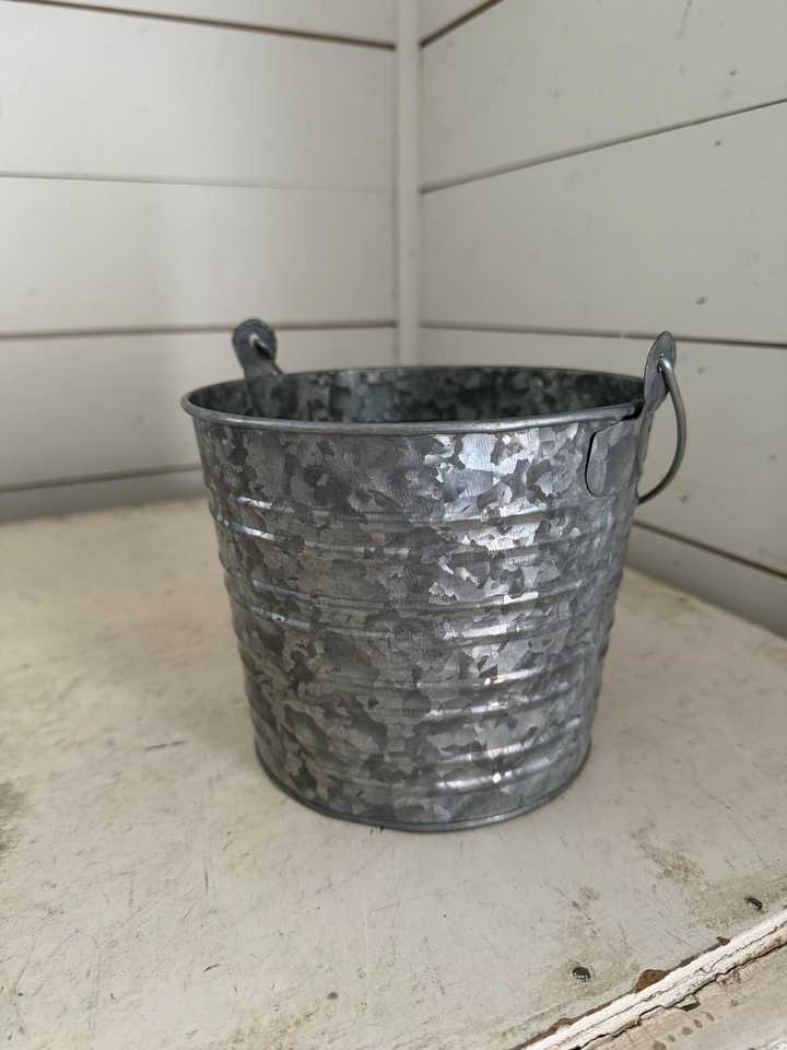 ถังน้ำแข็งโลหะพร้อมที่จับเชือกขนาดกลางทำจากเหล็กถังทำจากสังกะสีสีเงิน